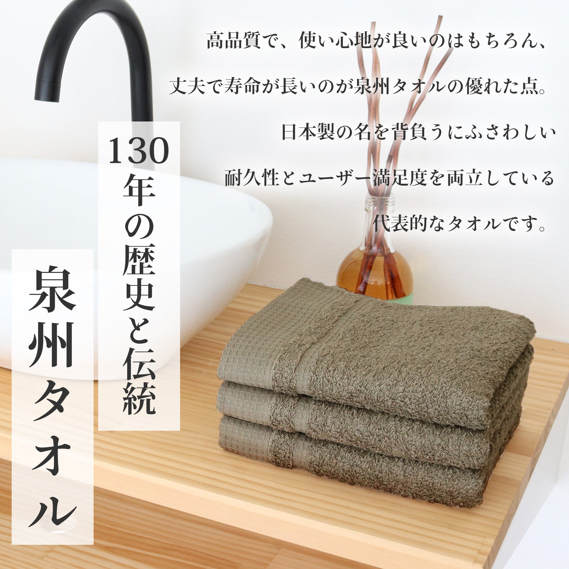- 【 吸水力 】:350匁の生地量と綿100%素材で吸水力が抜群。水分を素早く吸収できます。洗濯しても毛羽落ちしにくく、色移りの心配もありません。